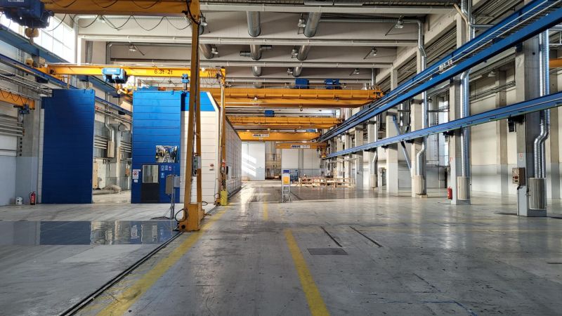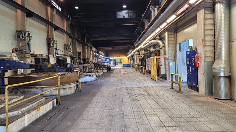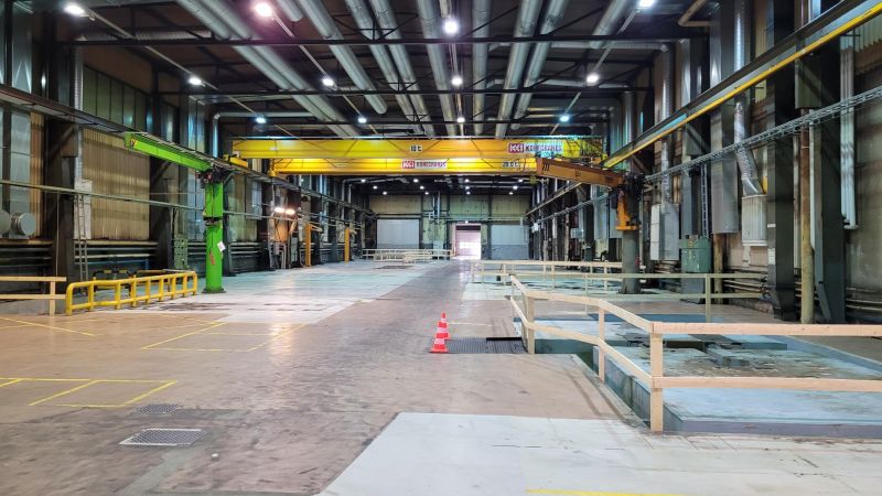 Yhdessä hallissa on karkaisuun tarkoitetut laitteistot paikoillaan.