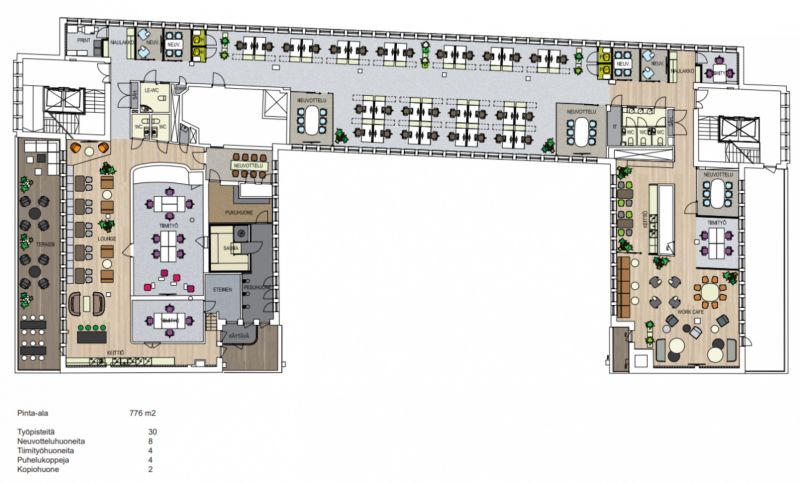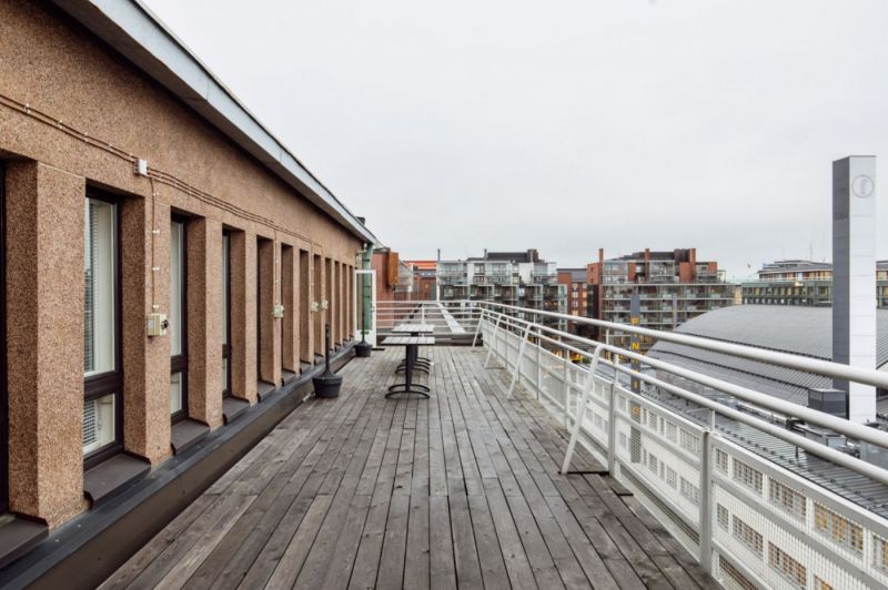 Vuokrataan ylimmän kerroksen persoonallinen 776m2 tila huippusijainnilla Kampissa. Tilassa on sauna, useampi kattoterassi sekä erillinen elokuvateatterihuone, jossa on aikaisemmin toiminut valtion elokuvatarkastamo. Tila on siistikuntoinen ja viimeistelty, mutta vanhan teollisuuskiinteistön rouheus on kuitenkin näkyvissä.