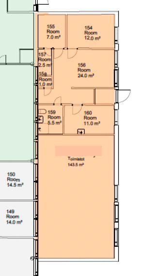 Tämä 143,5m2 toimistotila sijaitsee kiinteistön 2. kerroksessa. Toimistossa on huoneita, avotilaa ja oma wc-tila.