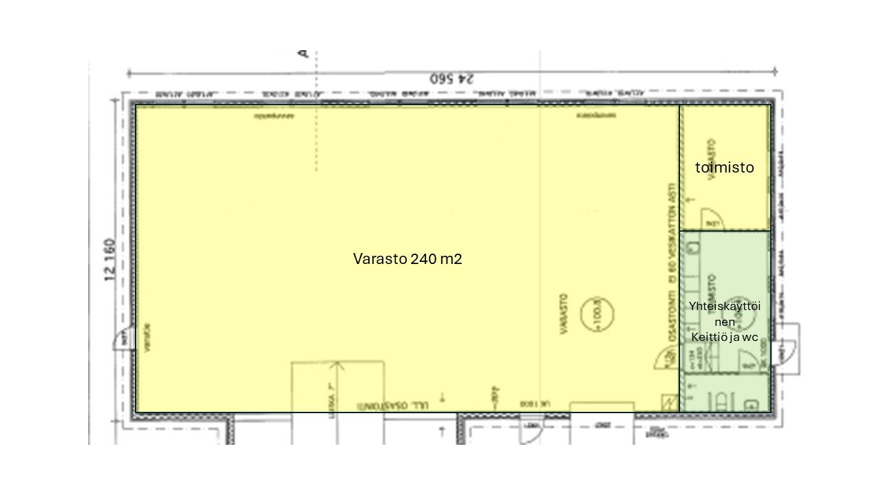 Varastohallin korkeus on 3,5 m. Nosto-ovi, jossa lastausmahdollisuus paketti autolle