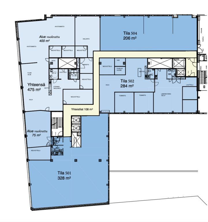 Tämä 284m2 toimistotila sijaitsee kiinteistön 5. kerroksessa. Toimisto koostuu muutamasta työhuoneesta, neuvotteluhuoneesta sekä laboratoriotilasta ja siihen kuuluu omat keittiö- ja wc-tilat. Tilaa on mahdollista remontoida vuokralaisen tarpeiden mukaan.