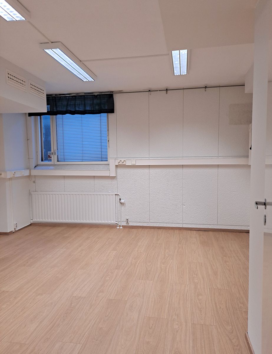 Heti vapaa täysin remontoitu toimisto/liiketila erinomaisella paikalla kirkkopuiston laidalla, puoliksi katutasossa, ikkunat kadulle ja sisäpihalle. Katutasosta on muutama porras alaspäin tilaan.