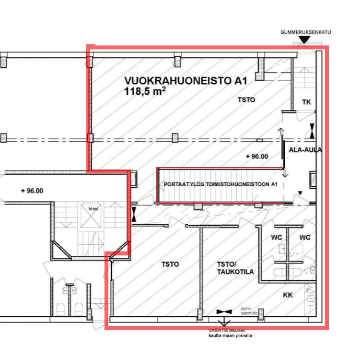 Pinta-ala n. 118,5 m2. Avotilaa, neuvottelutila, keittiö ja kaksi erillistä wc:tä. Vuokra 1450€/kk + ALV + sähkö kulutuksen mukaisesti.