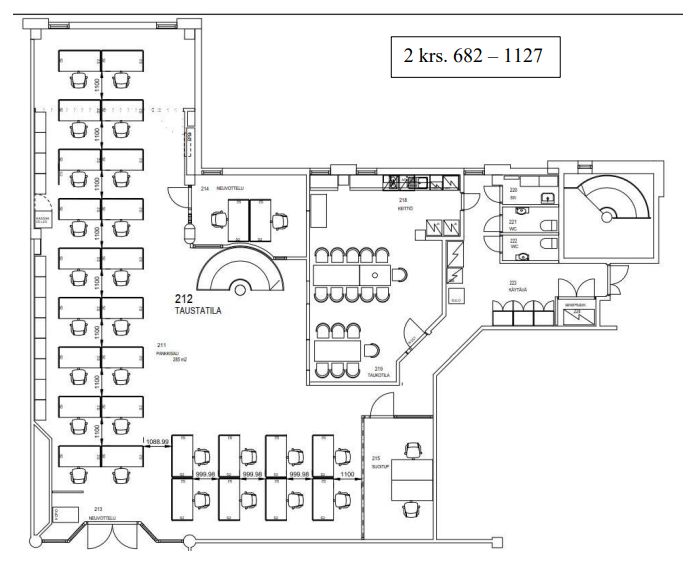 Malmintorin kauppakeskuksen toisessa kerroksessa sijaitsevan tilan pinta-ala on 285 m2. Tila on tällä hetkellä jaettu avotoimistotilaan, kahteen neuvotteluhuoneeseen, keittiö- ja taukotilaan sekä wc-tiloihin. Tilaan johtaa kaksi ovea, joista on pääsy kauppakeskuksen toiseen kerrokseen.