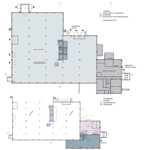 Vuokrattavana yhden- tai kolmenkin- käyttäjän tuotanto-/logistiikkakiinteistö. Varaston vapaa korkeus 4,5 metriä, lattiakantavuus 2000 kg/m2, 3 maantason nosto-ovea, lastausramppi nosto-ovella, 7 lastaustaskua. Sosiaali- ja ravintolatiat on 1170 m2, josta ravintola on 304,5 m2.