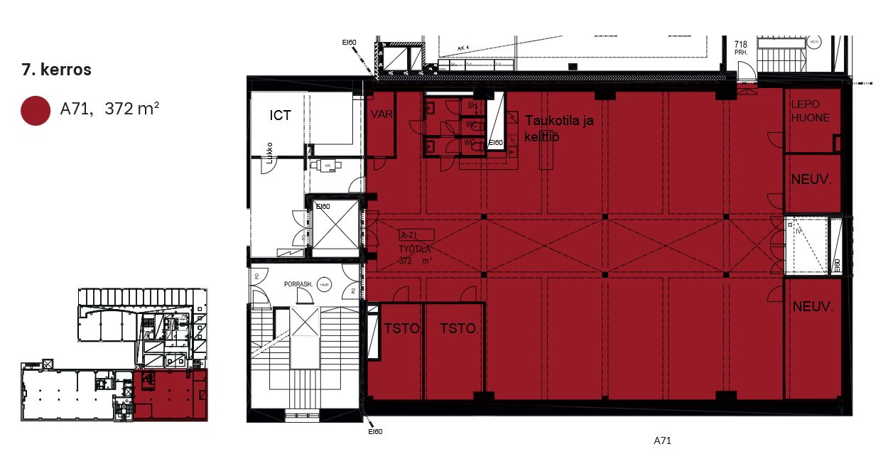 Vuokrataan toimistotilaa ainutlaatuisista Kravattitehtaan puitteista Vallilasta. Kiinteistössä vapaana mm. tämä 7. kerroksen 372 m2 toimistotila. Ohessa havainnollistavia kuvia kiinteistön tiloista sekä pohjakuva.