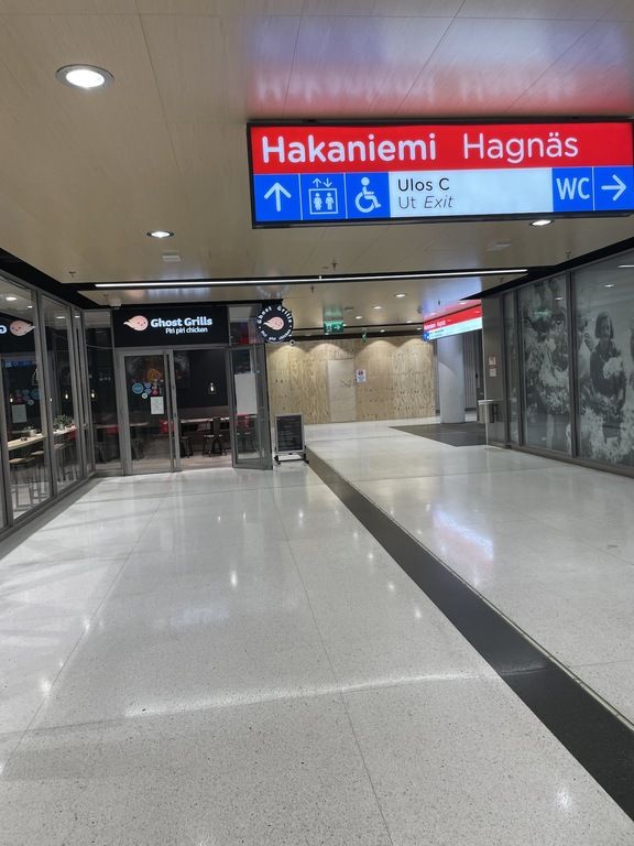 Tämä 73m2 liiketila sijaitsee Hakaniemen metroasemalla. Tila on näkyvällä paikalla ja siihen kuuluu oma siisti keittiö ja wc-tila. Ei sovellu ravintola-, kahvila- tai kampaamotoimintaan. This premise is not suitable for a restaurant, cafeteria or a barber shop.