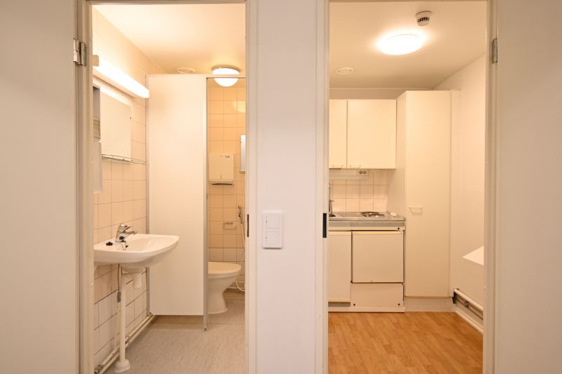 Tila on jaettu seuraavasti: Kaksi erillistä huonetta + aula + wc + keittokomero.