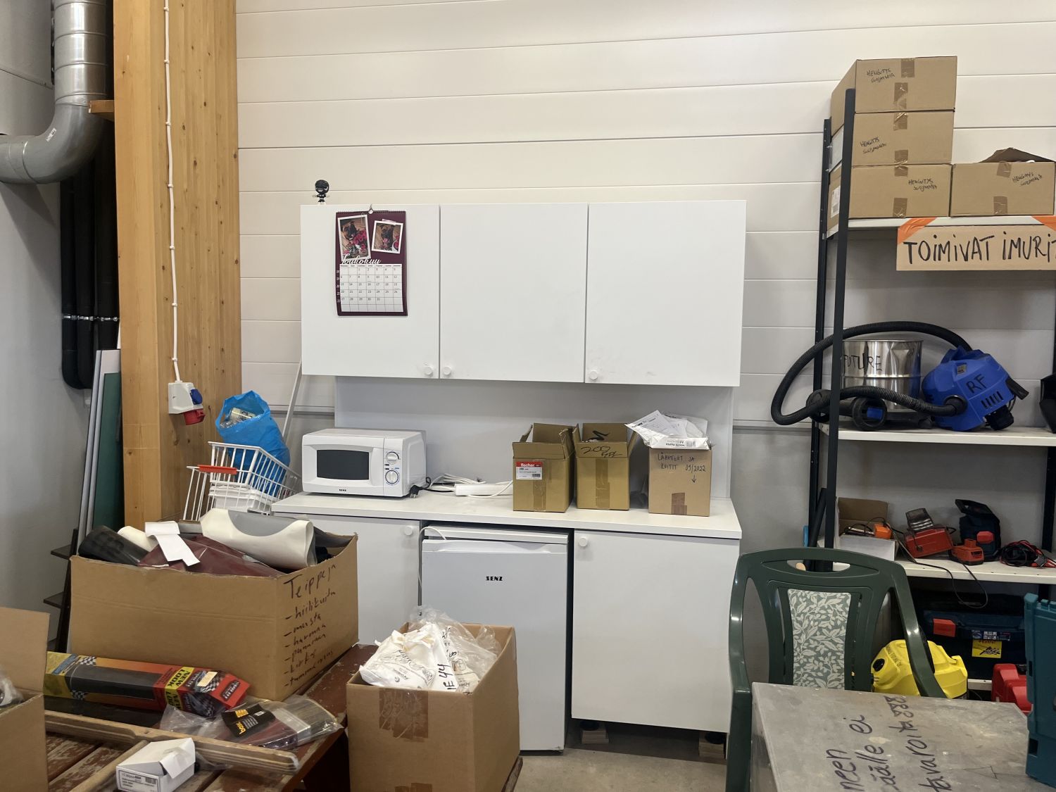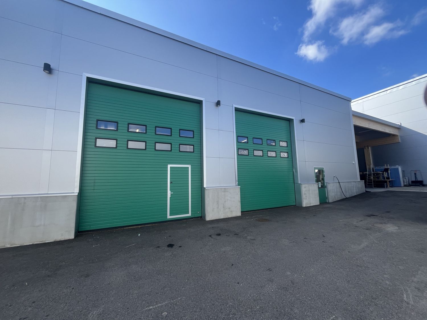 Koivuhaassa. Tilaan voidaan tarvittaessa rakentaa myös toimistoa. Tilassa kaksi nosto-ovea, pienoiskeittiö, wc ja suihku.