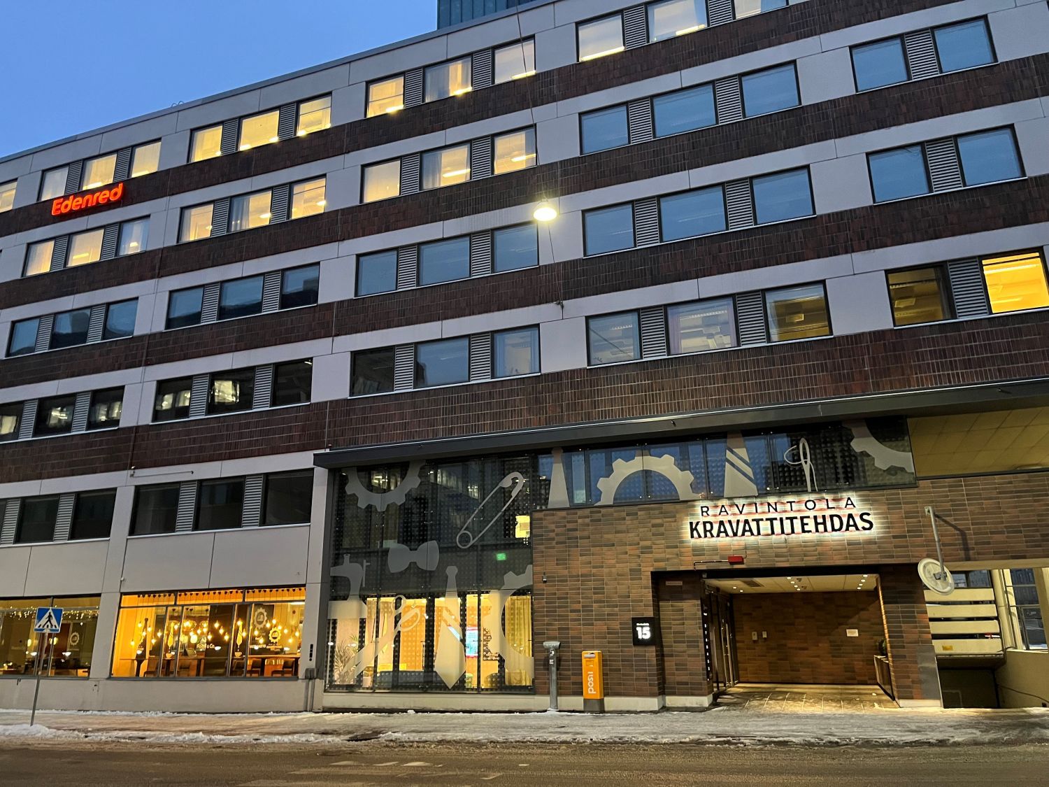 Kravattitehtaalla on aulapalveluiden ja ihanan lounasravintolan lisäksi käyttäjien vuokrattavissa yhteensä seitsemän erikokoista neuvottelutilaa, pysäköintipaikkoja, sosiaalitilat sekä pyöräparkki. Kuivatushuonekin vaatteille löytyy jos tulet pyörällä tai juosten.