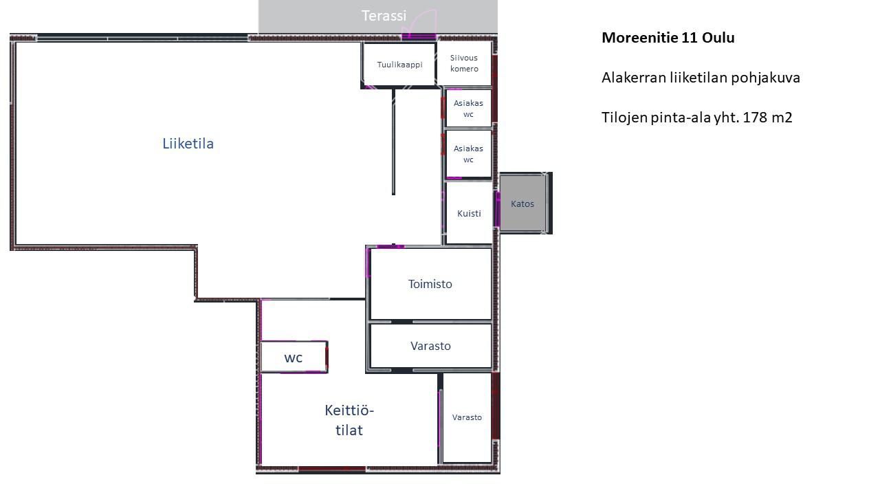 Heti vapaana 178 m2:n liiketila, joka soveltuu hyvin ravintola toimintaan.