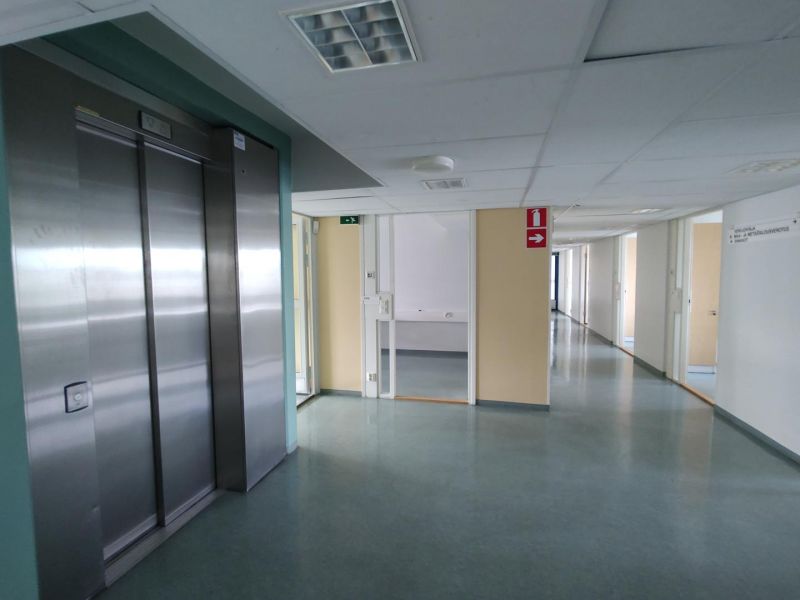 Ensimmäisessä kerroksessa toimisto-, sosiaali-, tuotanto- ja varastotiloja yhteensä noin 400 m2. Nämä tilat voidaan muokata myös kuntoliikunnalle sopiviksi. Huonekorkeus noin 3,5 m.