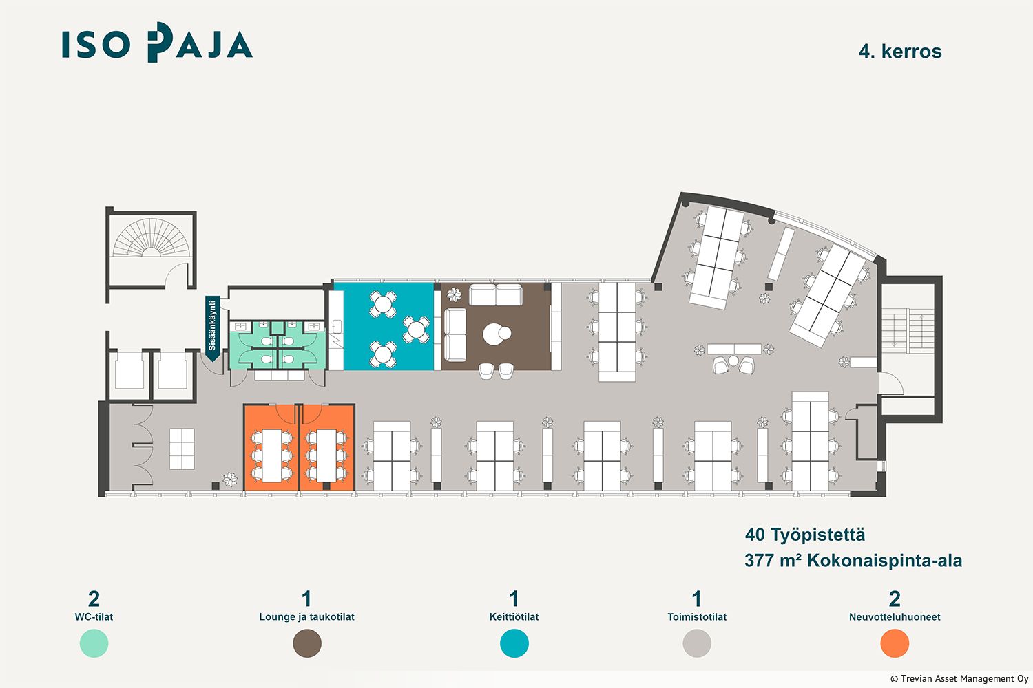 Vuokrattavana 4. kerroksen toimistotila yhdessä Suomen tunnetuimmista rakennuksista. Avotilaa, johon voi tarvittaessa rakentaa huoneita. Talosta löytyy mm. aulapalvelu, kokouskeskus ja laadukas lounasravintola. Kiinteistö sijaitsee Helsingin Pasilassa, erinomaisilla liikenneyhteyksillä niin julkisilla kuin autollakin.