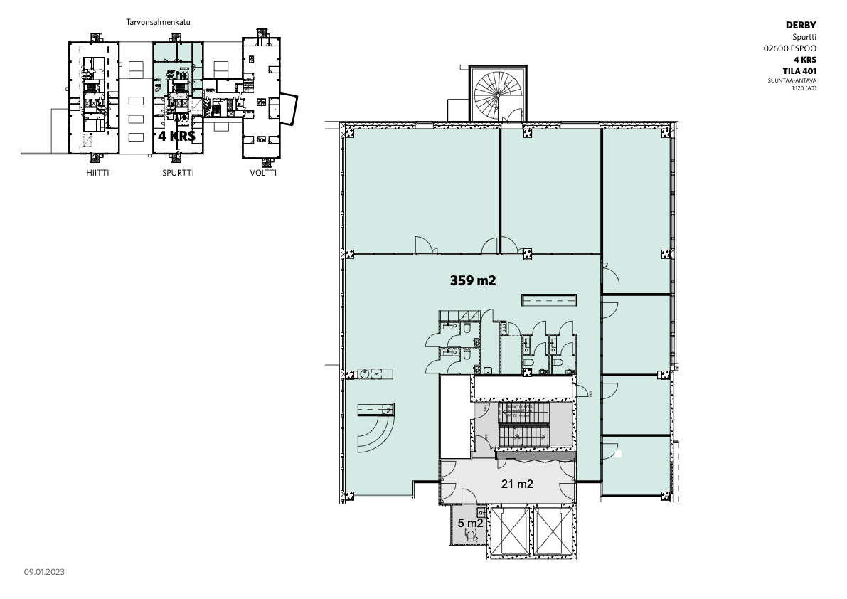 Muuntojoustava neljännen kerroksen toimistotila, jossa erikokoisia 10-40 m² työtiloja, oma keittiö, oleskelutila sekä wc-tilat. Mahdollista rakentaa esimerkiksi työhuoneita tarpeen mukaan.