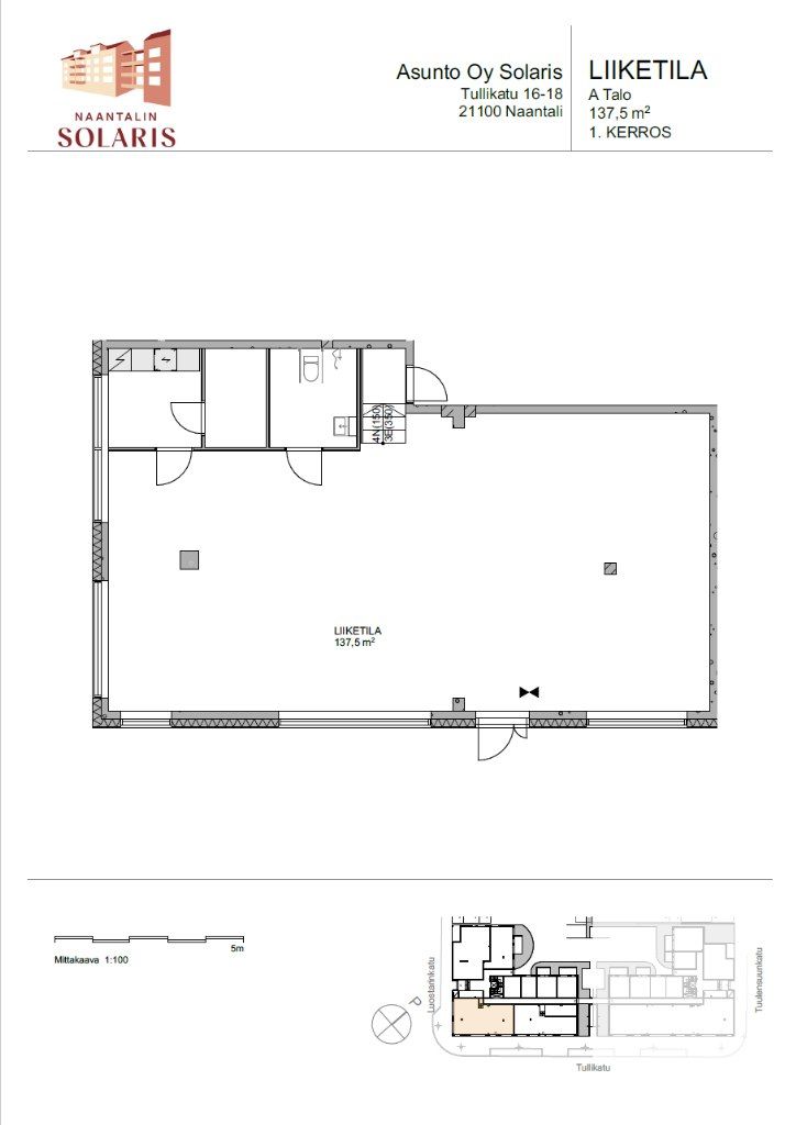 Myydään liikehuoneisto Naantalin keskustaan valmistuneen As. Oy Solariksen kivijalasta.