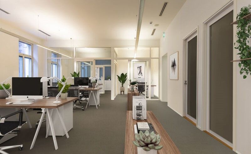 Vuokrattavana 3. kerroksen kaunista toimistotilaa, joka sijaitsee hienossa 1800-luvun lopun rakennuksen osassa. Toimistossa on korkeat huoneet ja kiva näkymä Kluuvikadulle.