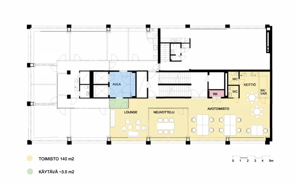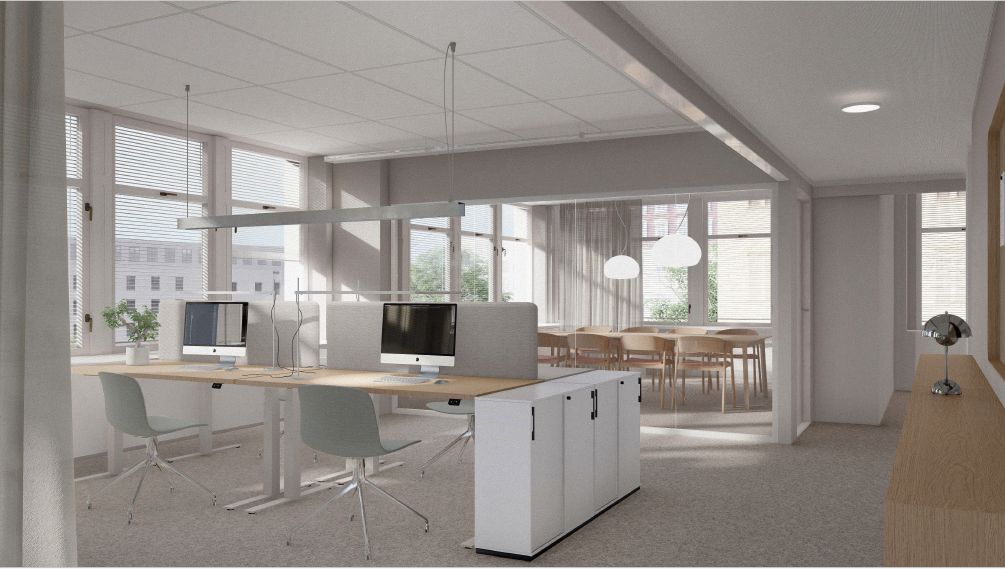 Tämä 140 m² toimistotila sijaitsee kiinteistön 2. kerroksessa. Hyväkuntoinen tila jossa huoneita. Tilat on helppo viimeistellä yrityksesi tarpeiden mukaan ja brändi-ilmeeseen sopiviksi. Kuvat ovat visualisointeja valmiista tiloista.