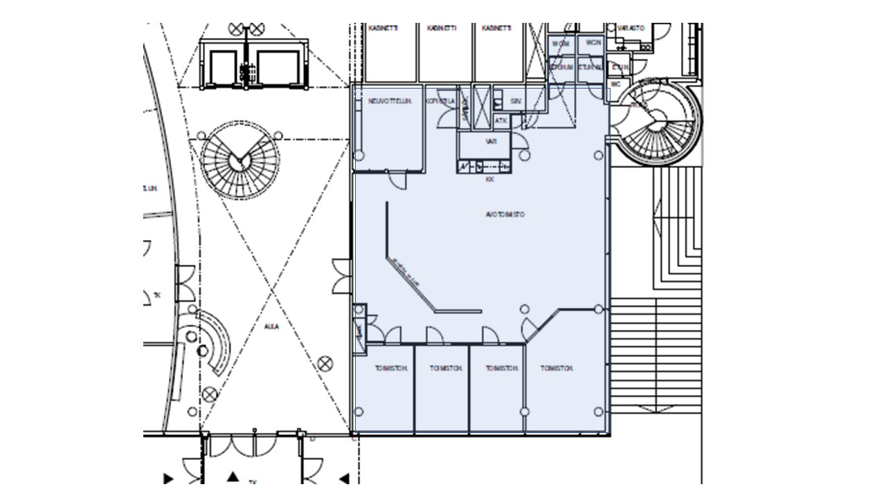 Valoisa ja tyylikäs 211 m² toimisto HTC Ninan ensimmäisestä kerroksesta.