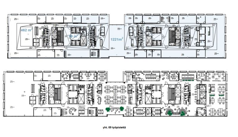 Laatua arvostavalle toimijalle modernia toimistotilaa huippu näkymin. Tähän muuntojoustavaan tilakokonaisuuteen istutat kaikki yrityksesi toiminnot sulavasti. Avoimien tilojen ja huoneiden lisäksi kokonaisuudesta löytyy useita erikokoisia neuvottelu- ja hiljaisen työn tiloja, teams-huoneita, puheluhuoneita. Virkistäytymiseen myös riittävästi kahvihuoneita, lounge- ja ruokailutiloja.