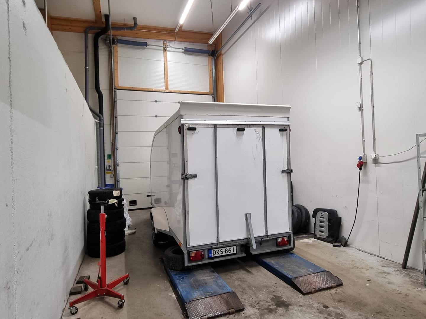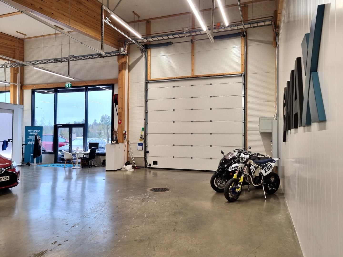Tila on päätytila ja siinä on hallia, toimistoa ja liike/showroomtilaa. Hallitila korkeus vaihtelee 4,7-7 metrin välillä. Kolme nosto-ovea sekä näyttävä sisäänkäynti asiakkaille. Hallissa on lattiakaivot.