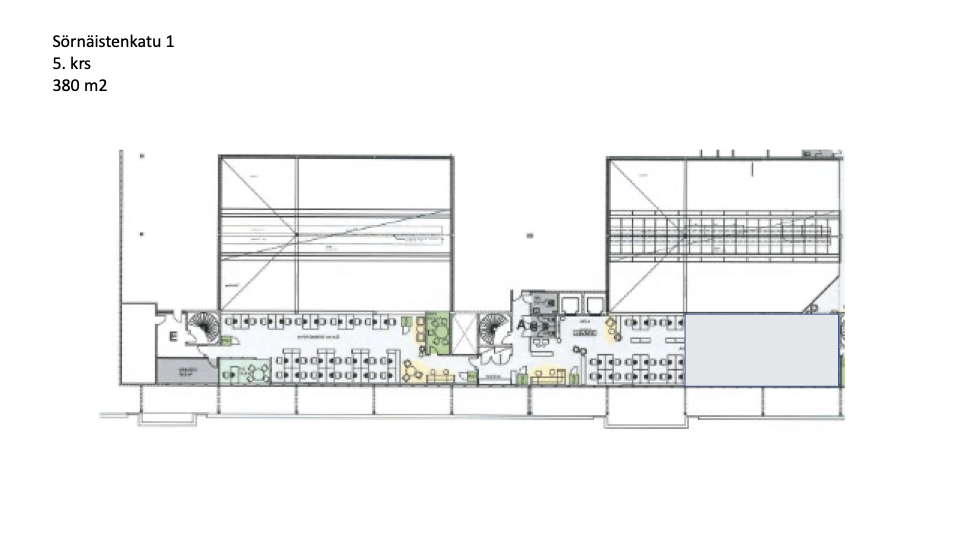 Siisti, ylimmän kerroksen täysin uusittavissa oleva 380 m² toimisto Helsingin Kalasatamasta.