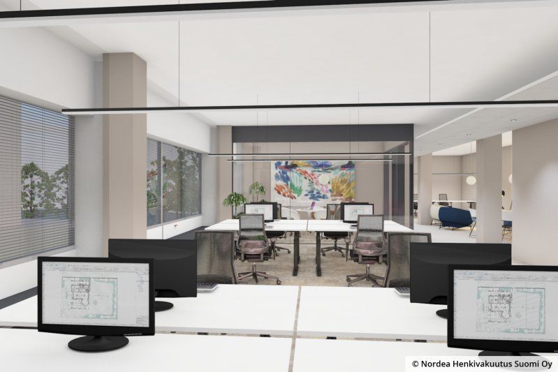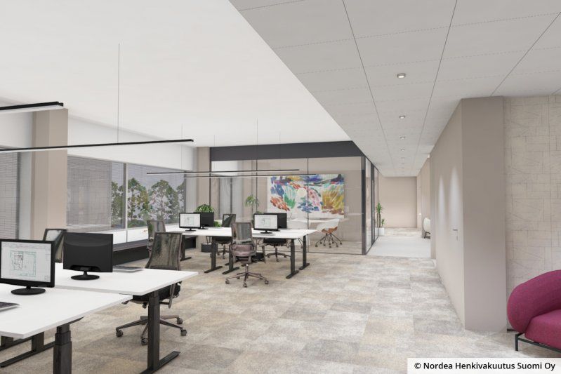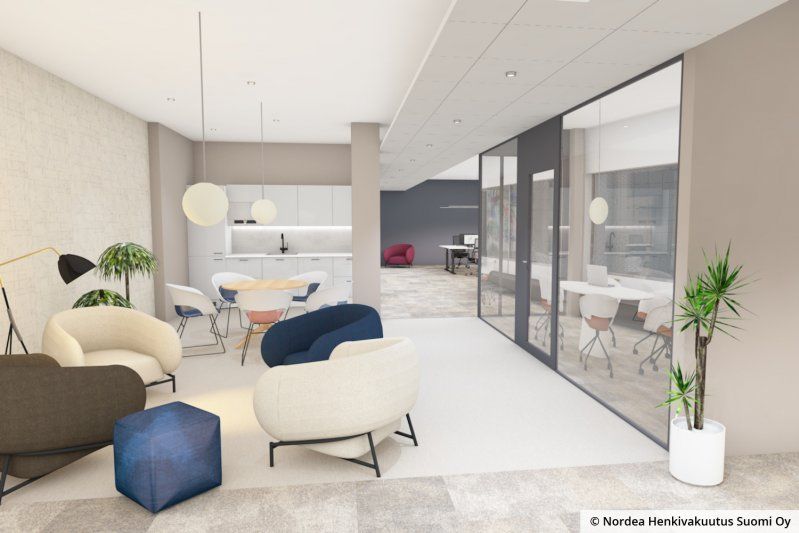 Huikea mahdollisuus tehdä omannäköinen toimisto. Kiinteistön kolmannen kerroksen suurempi tila voidaan jakaa 2-6 käyttäjälle josta tämä 167 m2 olisi yksi tila. Ohessa muutama virtuaalikuva siitä mikä kaikki ehostuksella tilaan on mahdollista eli tila rakennetaan ja remontoidaan tulevan käyttäjän tarpeen ja toiveiden mukaan. Vuokrataso on järkevä vaikka lyhyt matka jalan tai ratikalla / bussilla vaikkapa Rautatieasemalle tai Pasilaan.