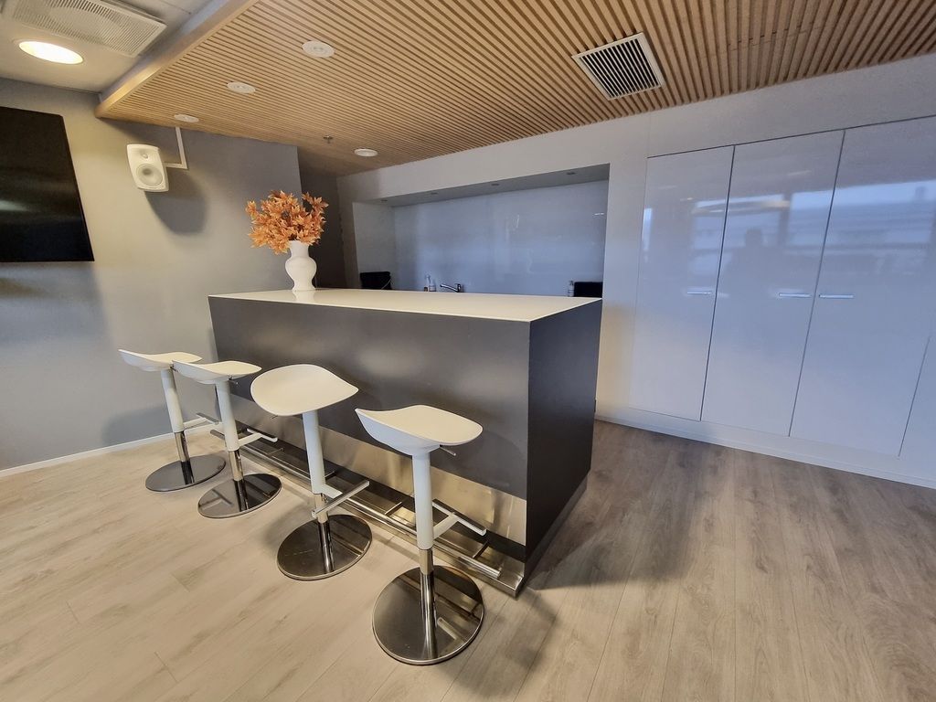 Tämä tyylikäs 552 m² tila sijaitsee Opus2-talon 5. kerroksessa. Toimistossa on erikokoisia työskentelyalueita, neuvotteluhuoneita sekä omat keittiö- ja wc-tilat.