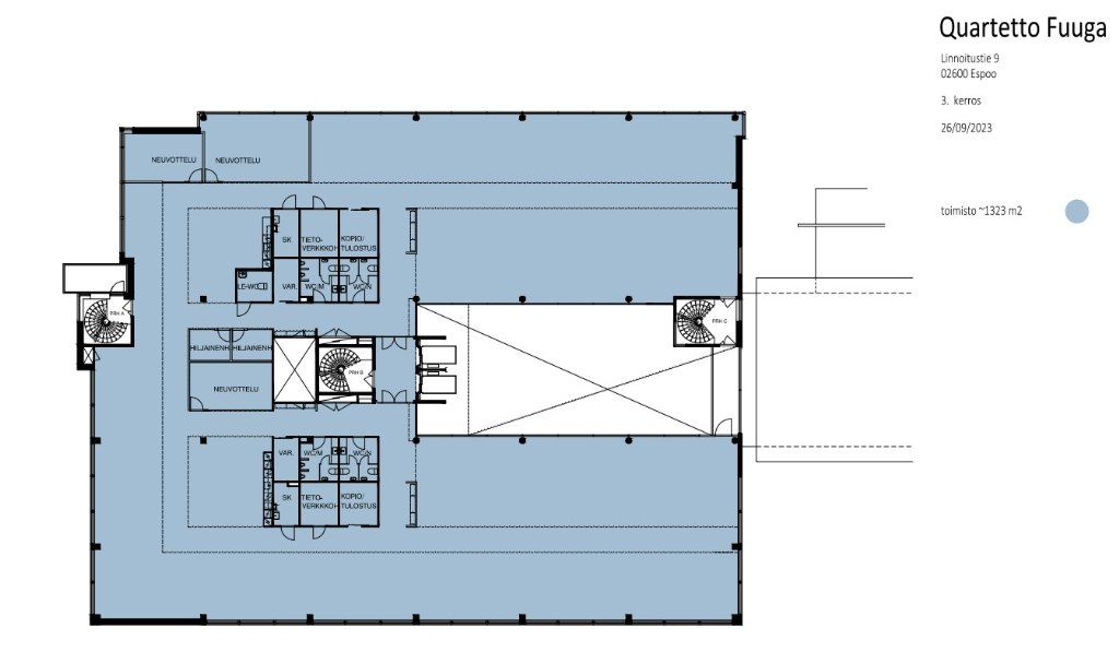 Vuokrataan 1333 m2 toimistotila. Valoisa suurilla ikkunoilla varustettu toimisto on tällä hetkellä avotilana, jossa on avokeittiö, neuvotteluhuone sekä wc-tilat. Lisäksi tilaan on lastauslaituriyhteys. Pohja ja viimeistely toteutetaan tulevan vuokralaisen toiveiden mukaiseksi. Tilasta on näkymät kolmeen suuntaan, toisella puolella dynaamista Leppävaaraa ja toisella kaunis metsäinen maisema.