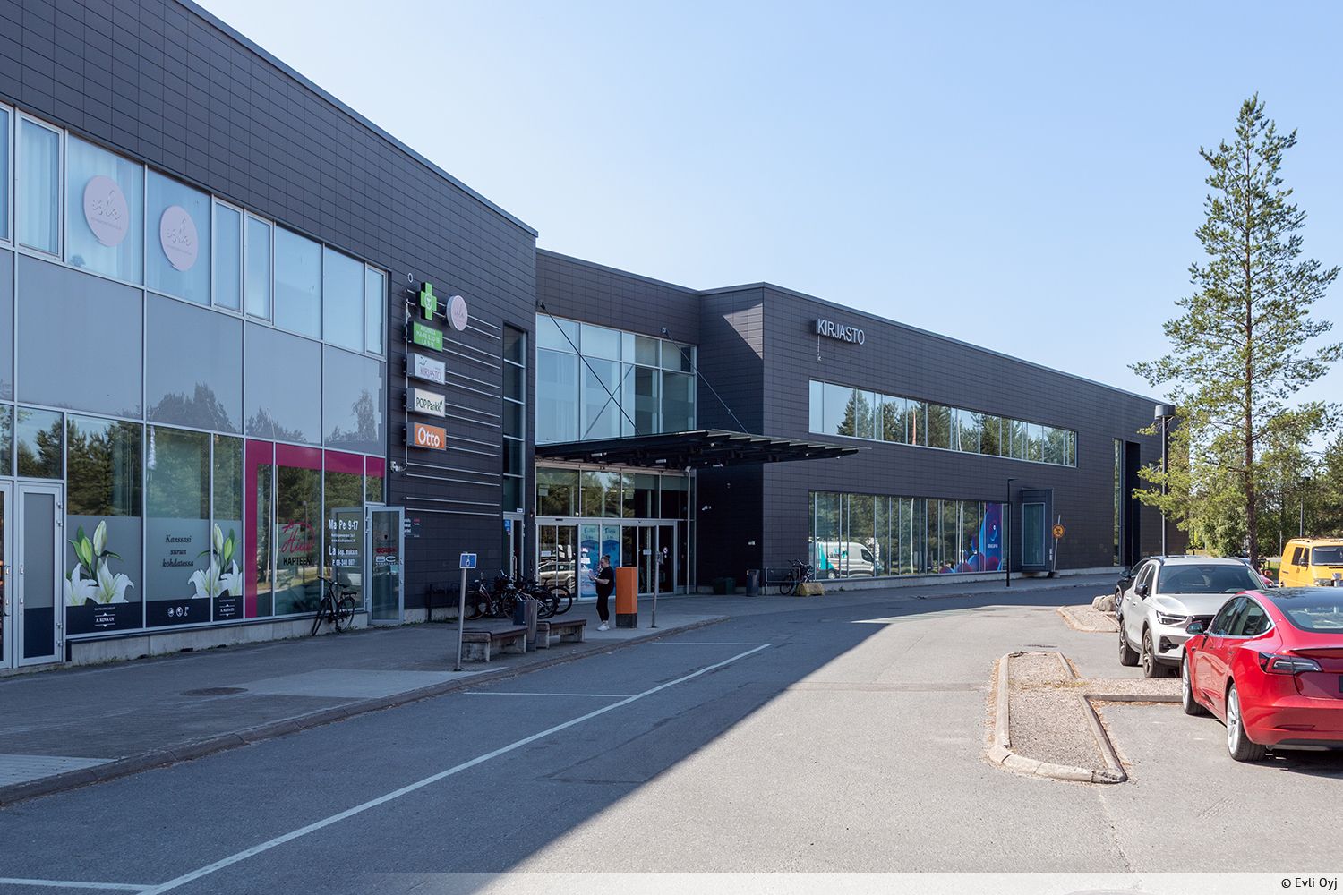 Kauppakeskuksen pihapysäköintialueella on runsaasti pysäköintipaikkoja.