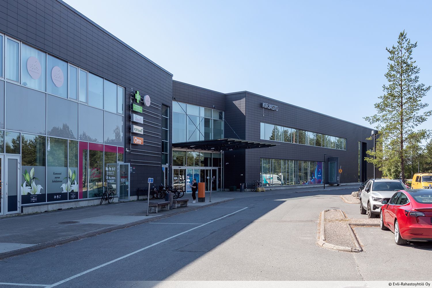 Kauppakeskuksen pihapysäköintialueella on runsaasti pysäköintipaikkoja.