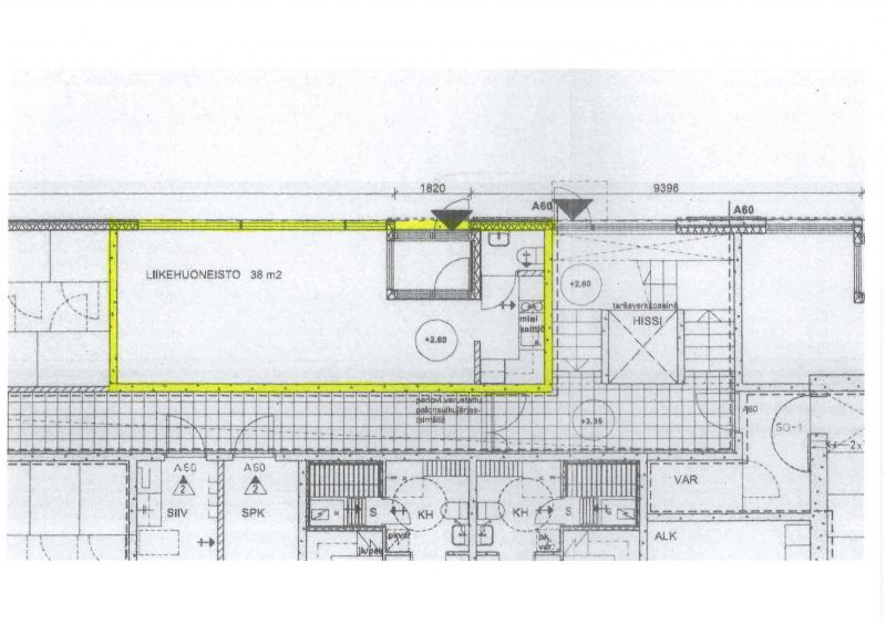 Selkeä suorakaiteen muotoinen huoneisto joka koostuu avotilasta n. 30m² ja sos.tiloista n. 8m².