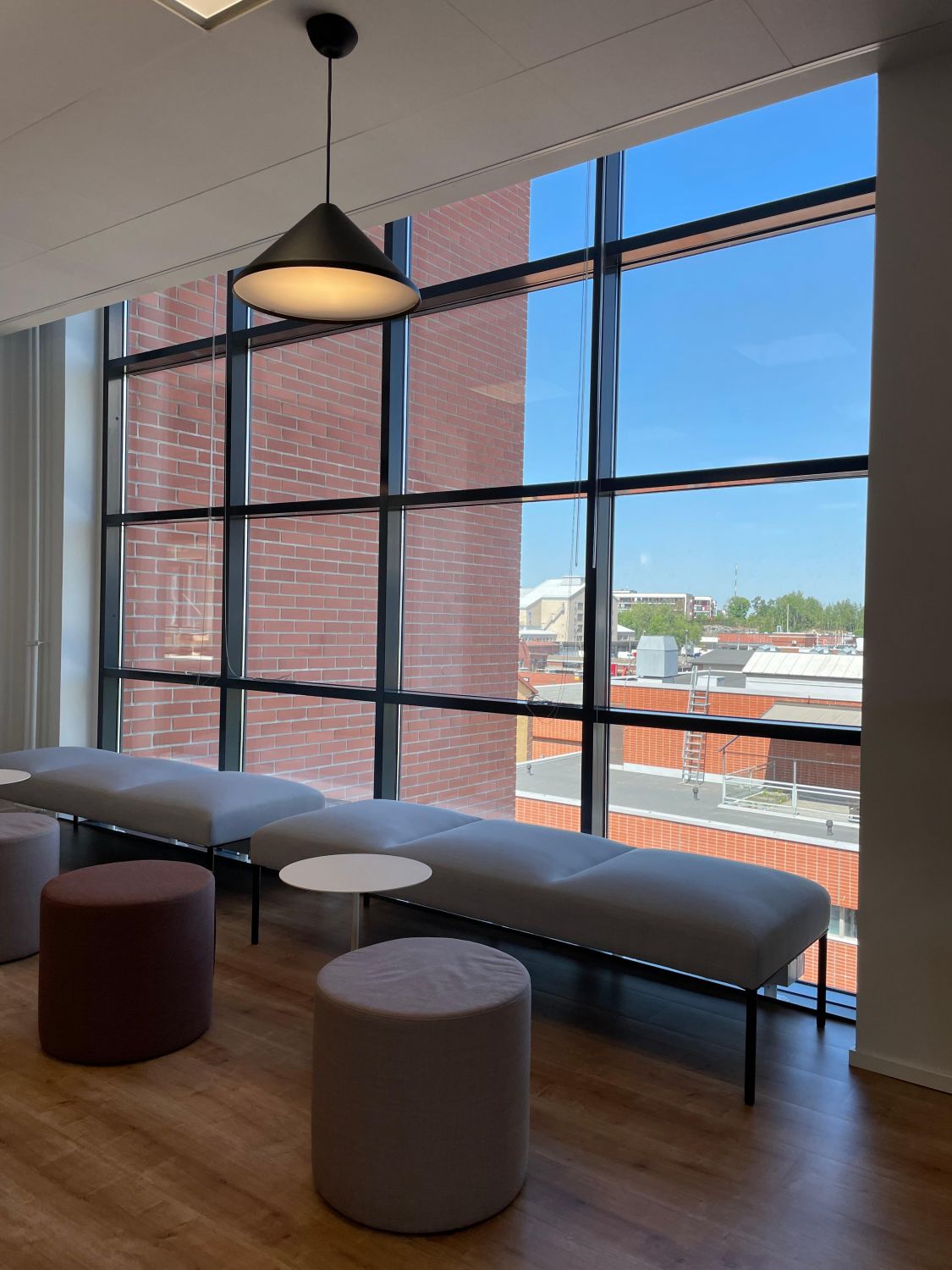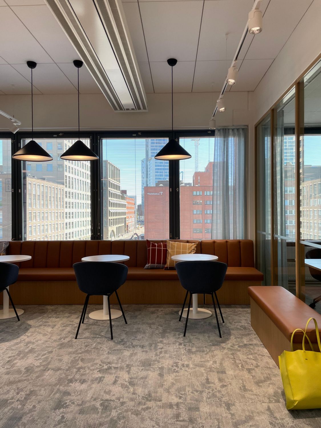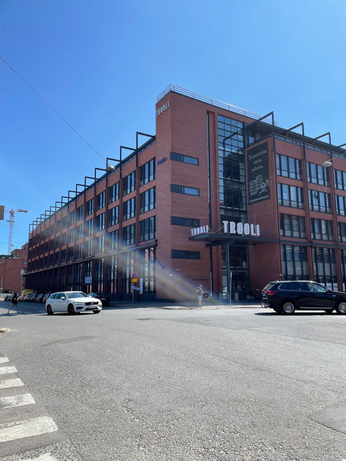 Kalasataman Trooli-korttelin toiseksi ylimmässä kerroksessa on tämä kauniiksi remontoitu. Ikkunat avautuvat pohjoiseen sisäpihalle, yhdessä työtilassa ihaillaan etelään Suvilahden suuntaan avautuvia maisemia.