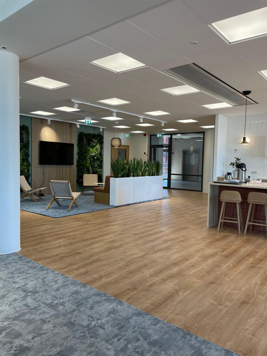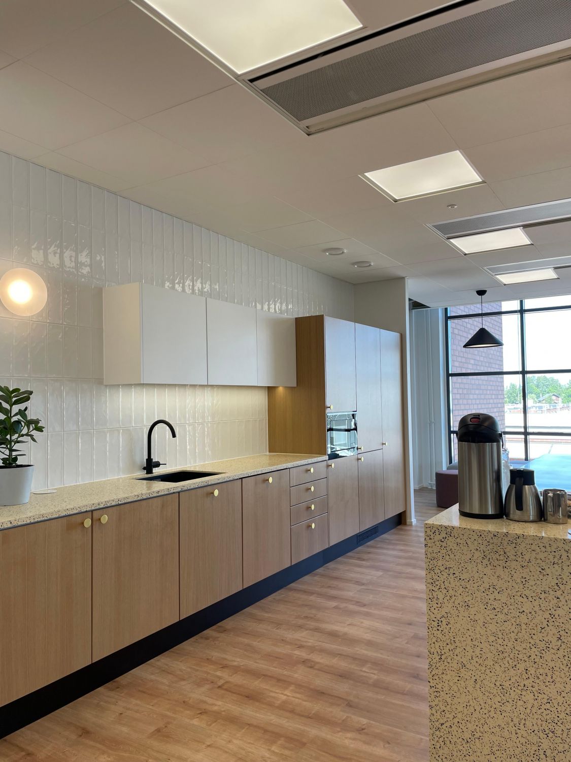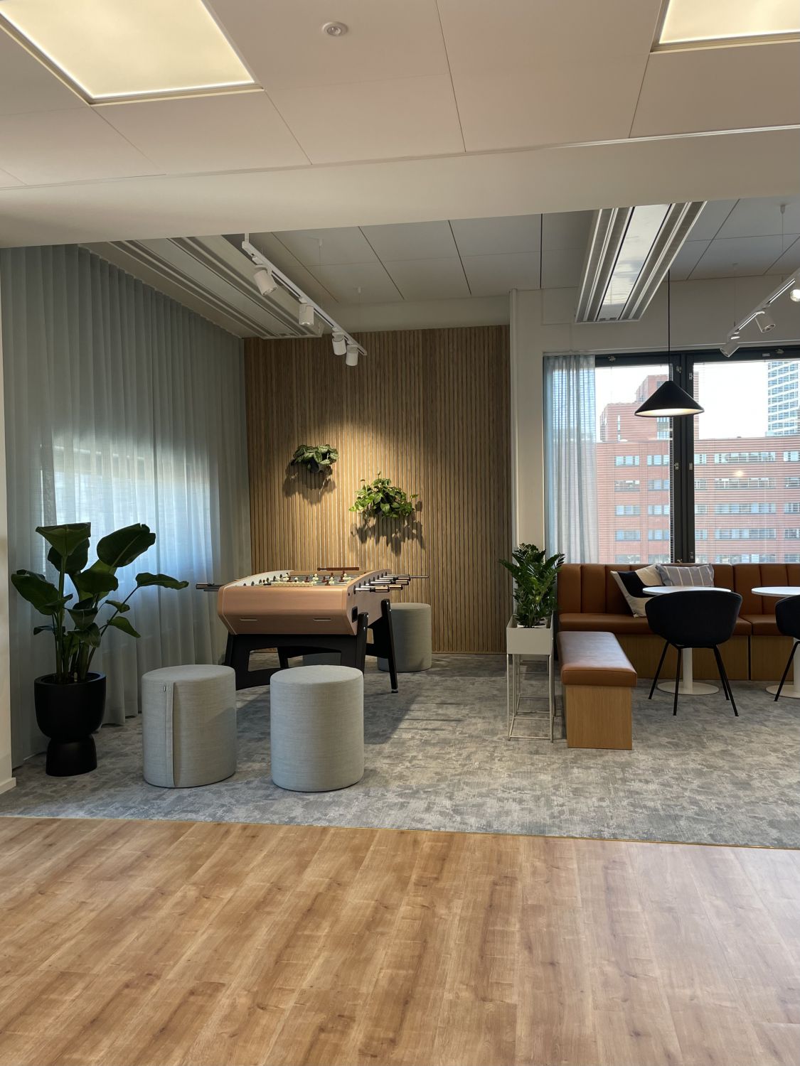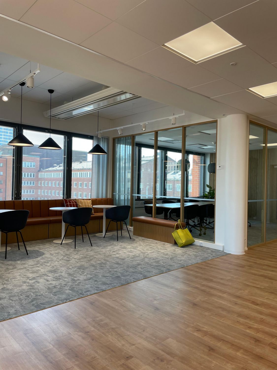Kalasataman Trooli-korttelin toiseksi ylimmässä kerroksessa on tämä kauniiksi remontoitu. Ikkunat avautuvat pohjoiseen sisäpihalle, yhdessä työtilassa ihaillaan etelään Suvilahden suuntaan avautuvia maisemia.
