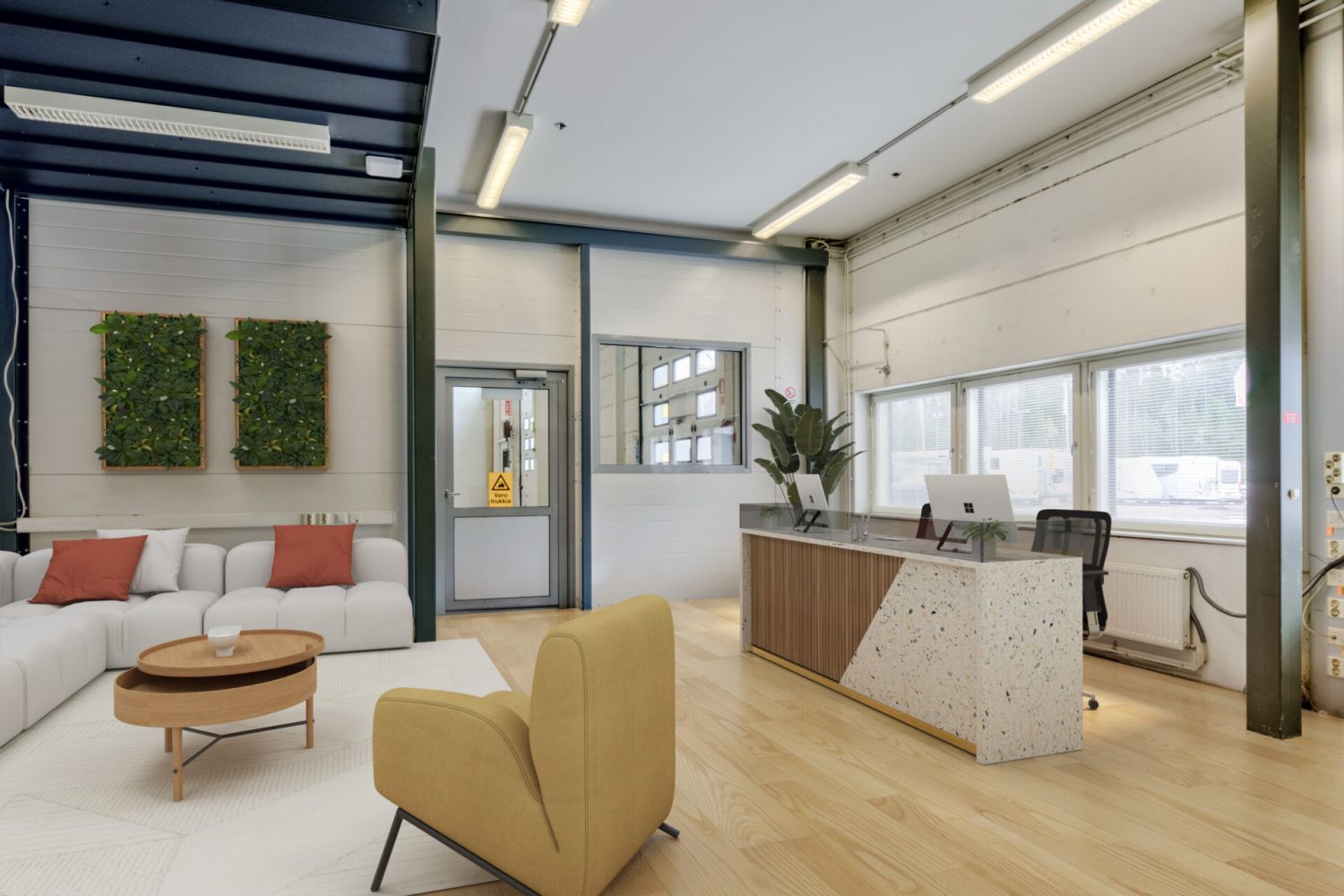 Korkeaa (vapaa korkeus 5-6 metriä) heti vapaata varastotilaa (1410 m2) hyvillä lastauksilla eli parilla nosto-ovella. Sijaitsee A-talossa. Yhteydet loistavat moneen suuntaan. Varaston parvelta löytyy kätevästi myös toimistotilaa.