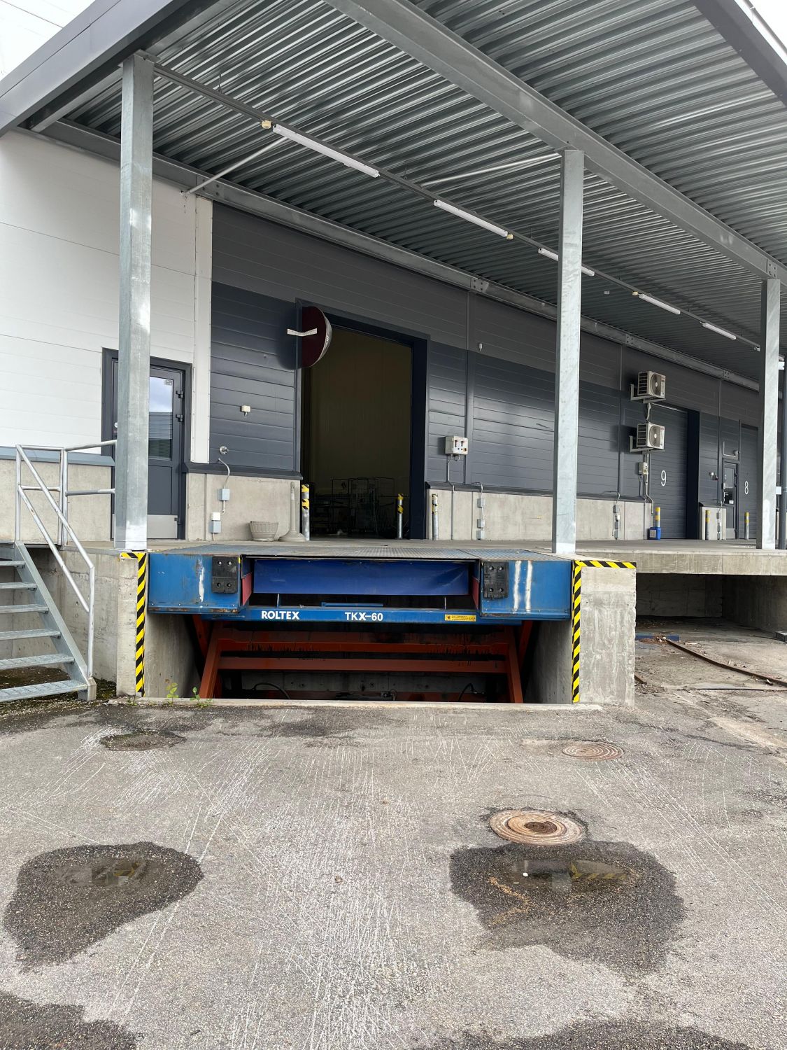 Koskelo Trade Parkin C-talosta 1177 m2 korkea varastotila. Vapaa korkeus 5,7/8,9 m. Nosto-ovi lastauslaiturille.