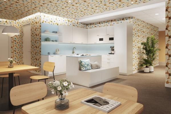 Moderni toimisto, avotilaa, ja pari huonetta.