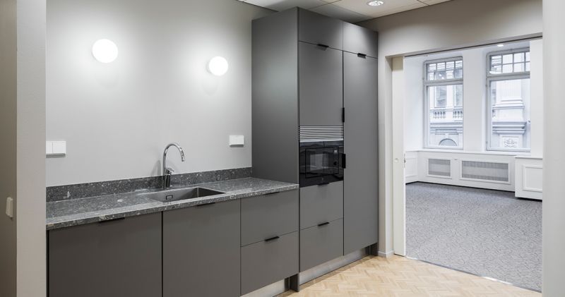 Tyylikäs kolmannen kerroksen 150 m² toimistotila Aleksanterinkadulla.