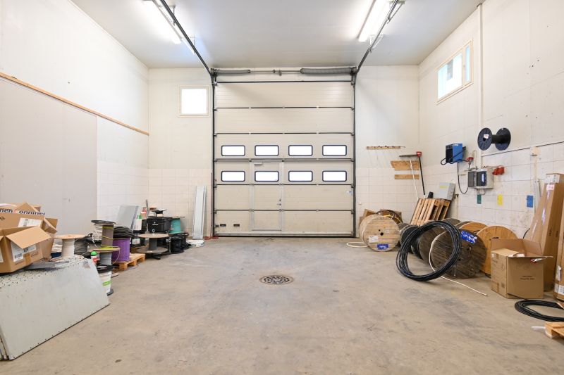 Korkea sähköinen nosto-ovi (korkeus 4 metriä, leveys 4,2 metriä) ja käyntiovi.
