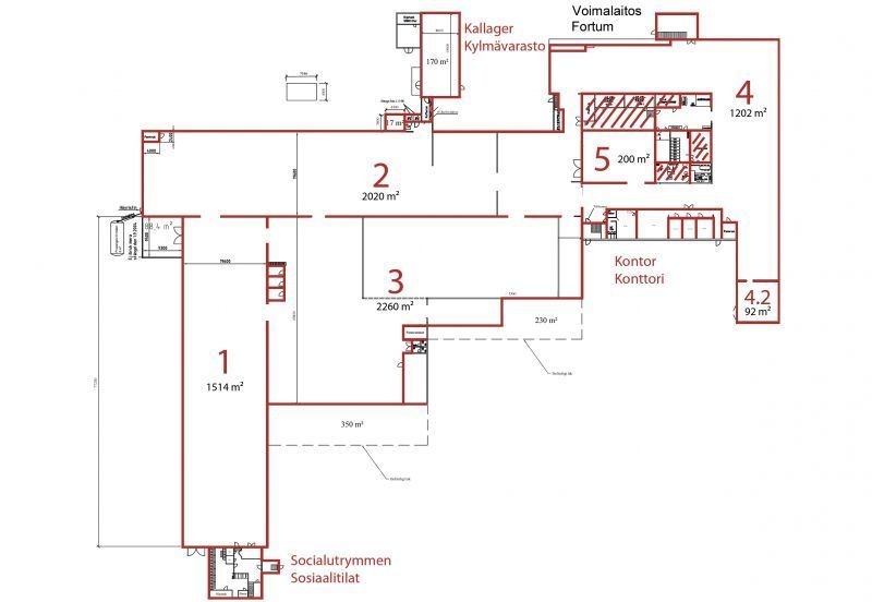 Tilat muunneltavissa ja moderisoitavissa vuokralaisen tarpeen mukaan.