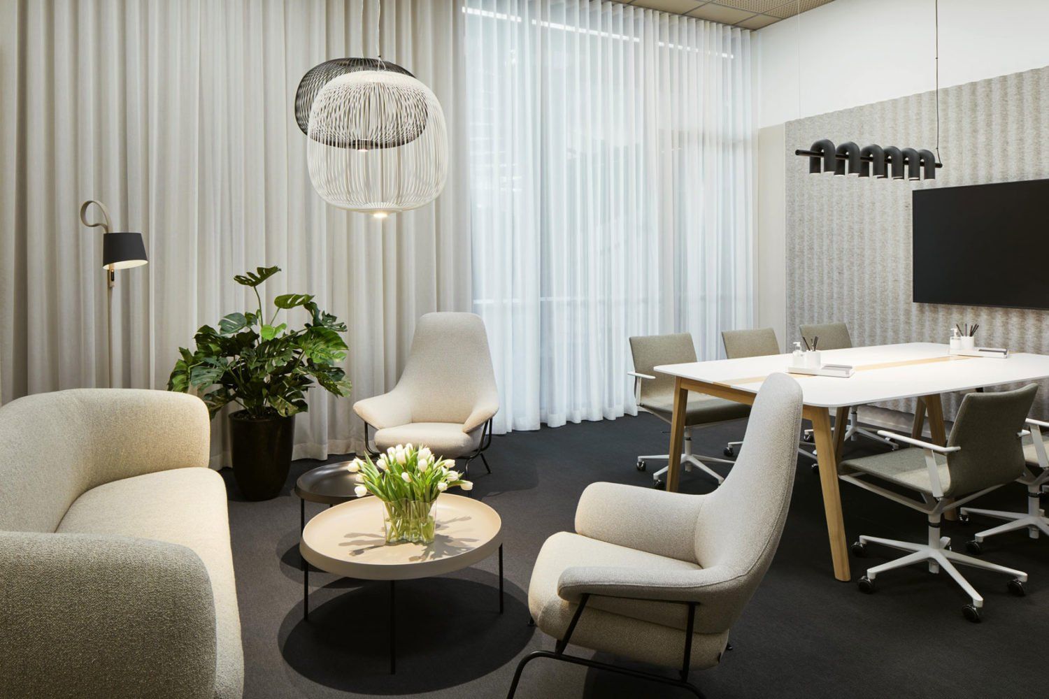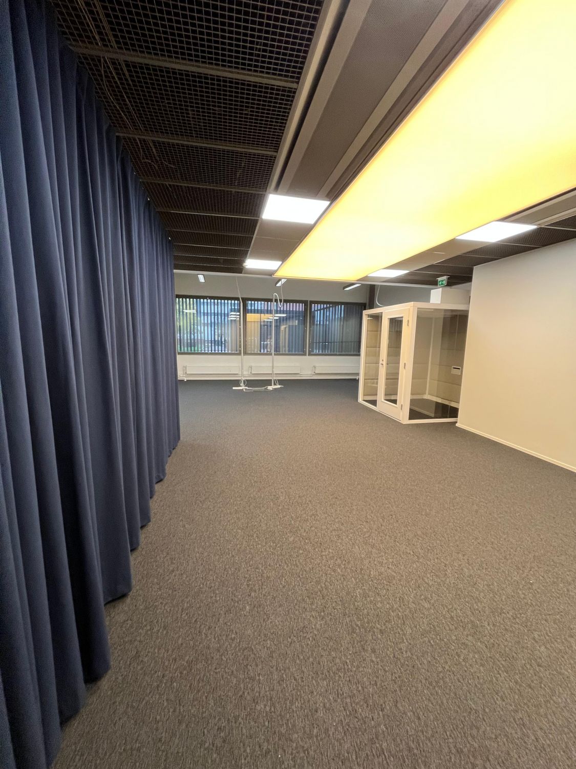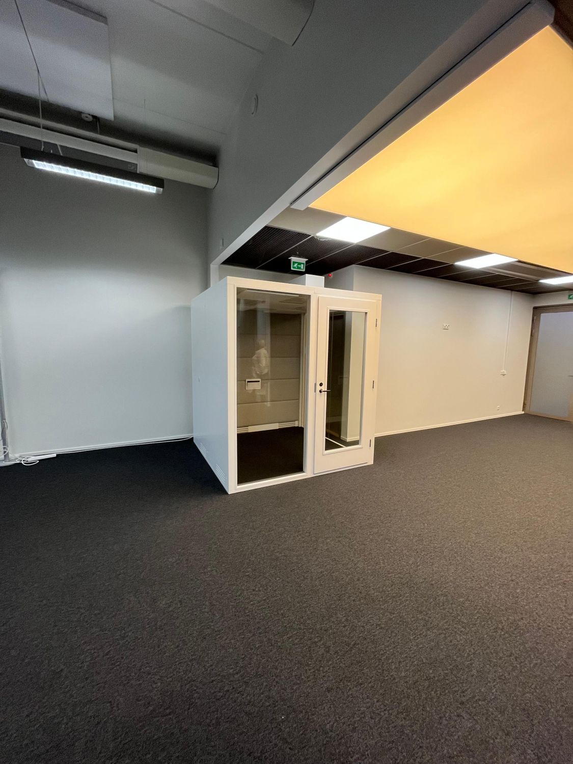 Tilassa valmiina myös myös kaksi vetäytymistilaa (puhelinkoppi ja 2-3 hlö Teams-tila), jotka vuokralaisen käytettävissä. Samoin pieni oma keittiö, kaksi vessaa ja pieni varastohuone löytyy.