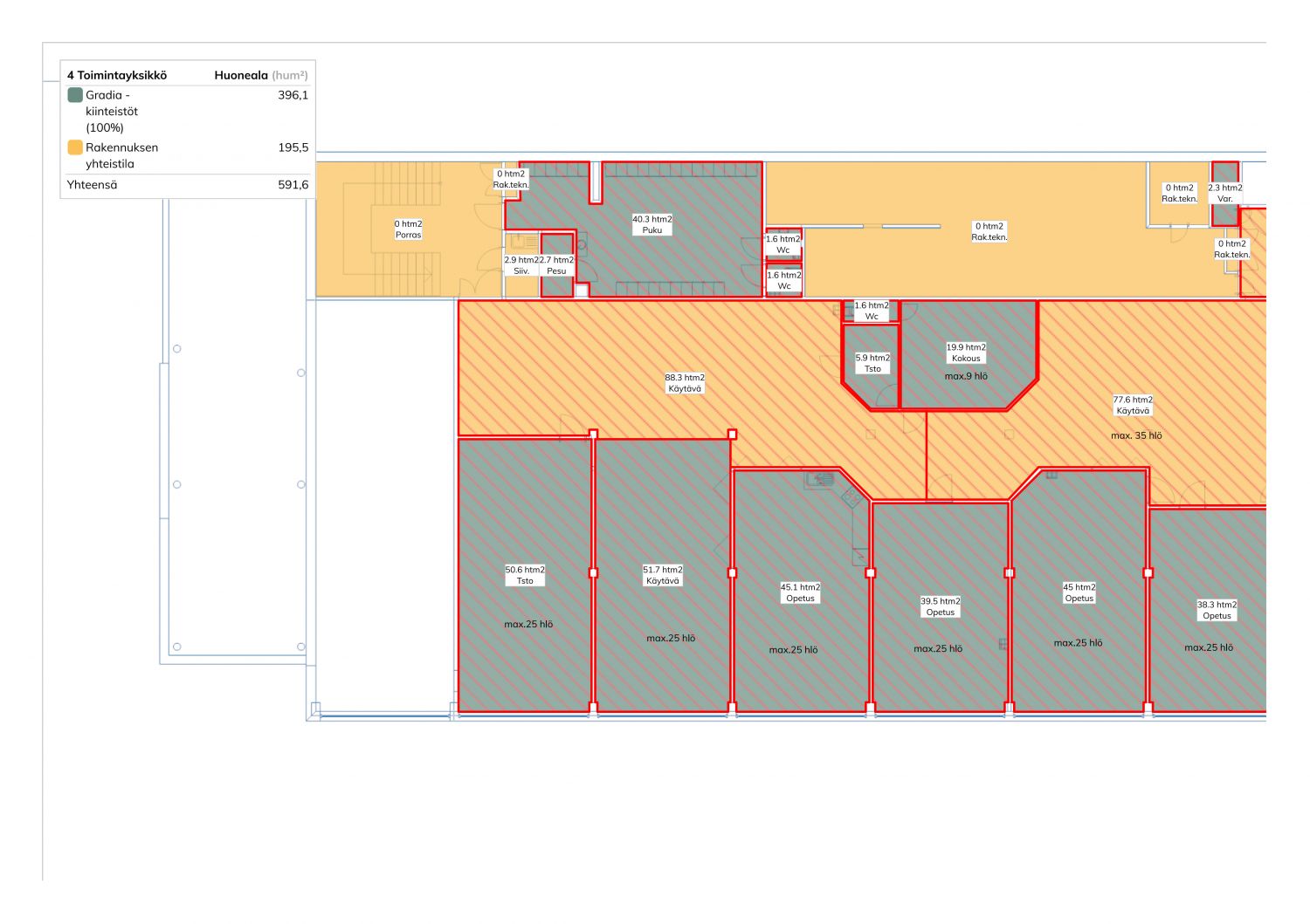 Avointa toimistotilaa Viitaniemestä, tila sijaitsee osana Gradian kampusaluetta muodostaen oman itsenäisen kokonaisuuden. Tilassa on suuria luokkamaisia tiloja jotka soveltuvat erinomaisesti esimerkiksi tiimi- tai ryhmätyötiloiksi. Tilojen muokattavuus on hyvä.