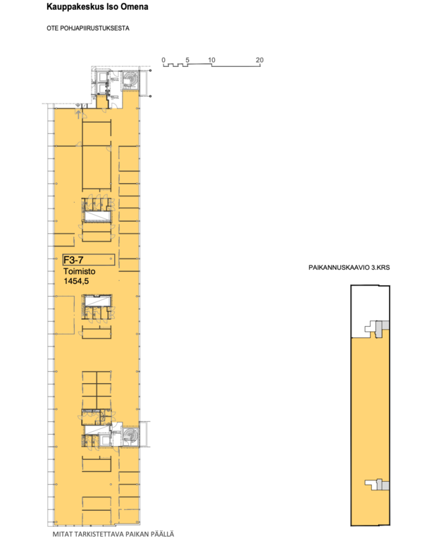 Siisti ja toimiva 3. kerroksen 1454,5 m² toimisto loistavien liikenneyhteyksien varrelta Kauppakeskus Iso Omenasta.