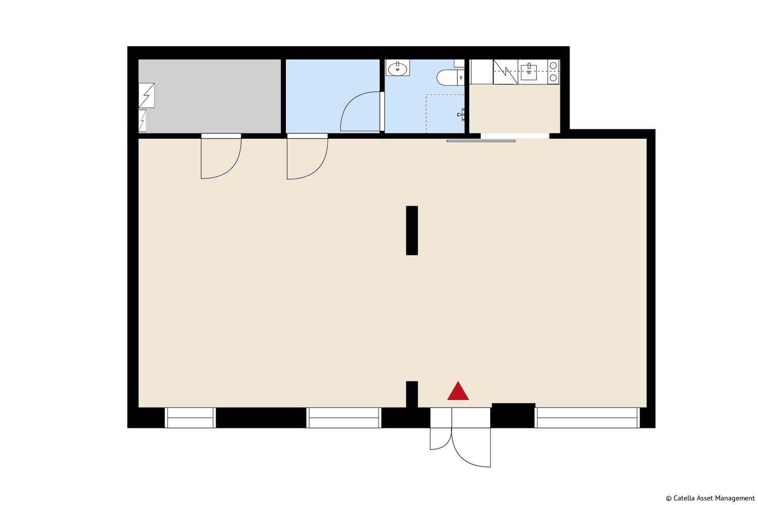 Myydään tai vuokrataan asuinkerrostalon katutasolla sijaitseva liiketila. Tämä toimitila soveltuu hyvin vaikkapa myymäläksi, showroomiksi tai palveluliiketoimintaan. Avoimen liiketilan lisäksi tilakokonaisuus sisältää pienen varaston, kylpyhuoneellinen sosiaalitilan ja keittokomeron.