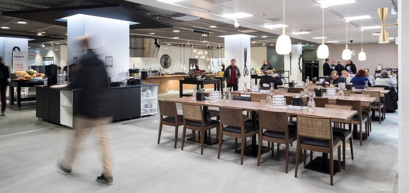 Lähialueella useita lounas- ja kahvilaravintoloita.