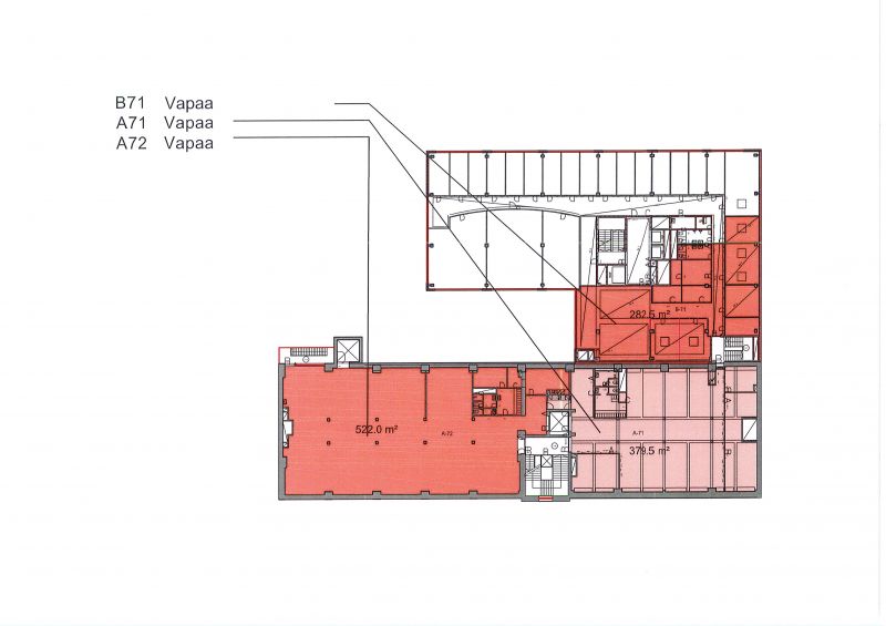 Toimistotilaa 379,5 m² (tila A71) kiinteistön 7. kerroksessa.
