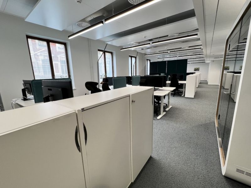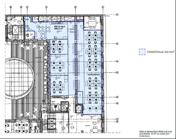 Tämä valoisa 317 m2 toimistokokonaisuus sijaitsee kiinteistön 3. kerroksessa. Tilassa on kolme neuvottelutilaa, joissa on parannettu ilmanvaihto. Nämä äänieristyt lasiseinäiset tilat sopivat hyvin myös ryhmätyöhuoneiksi. Avotilan lisäksi tilaan kuuluu oma keittiö ja loungealue. Vuokraan kuuluvat myös kalusteet. Tiloihin on kaksi sisäänkäyntiä. Työmatkapyöräilijöille on todella siistit tilat kiinteistön katutasossa.