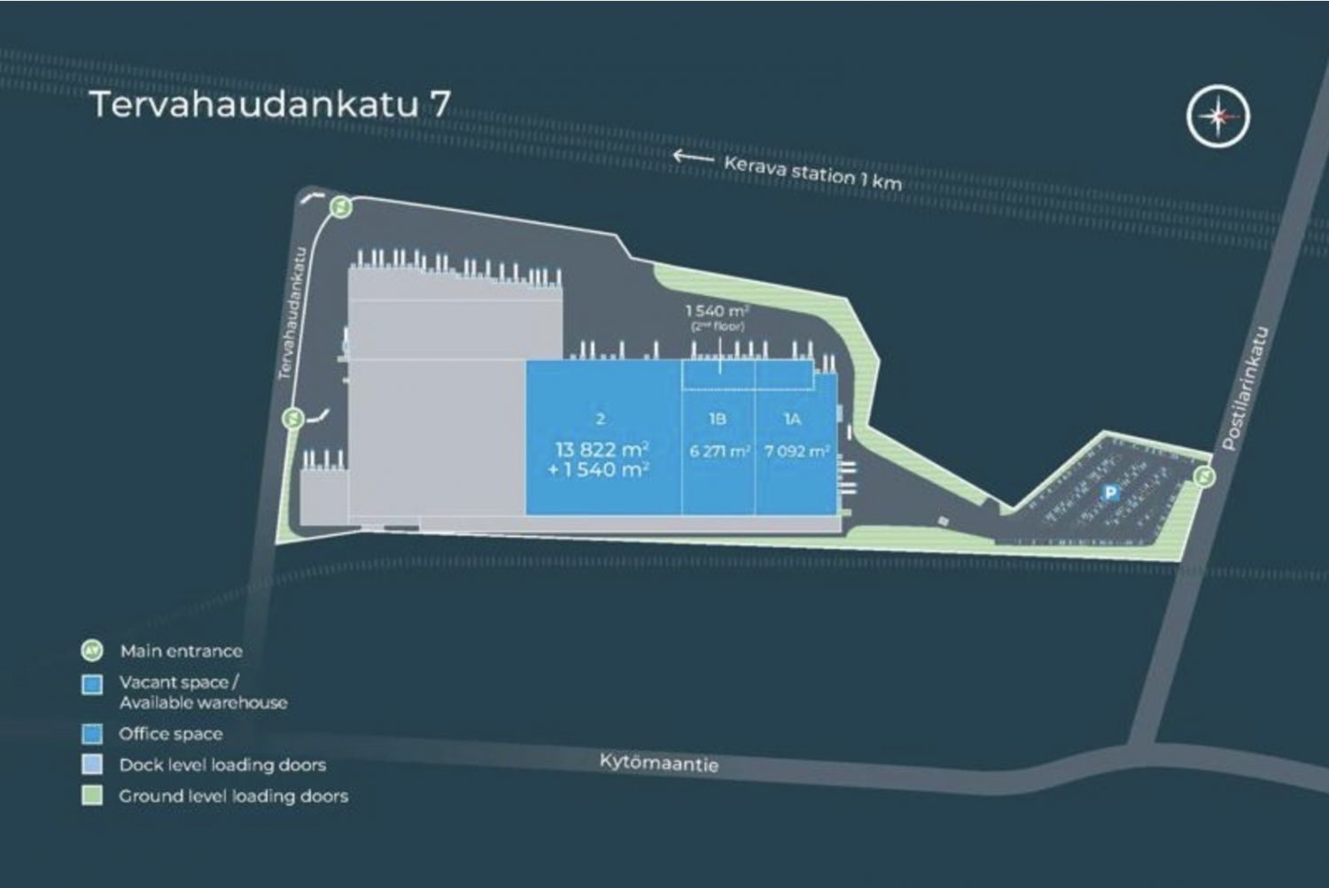 Keravalla sijaitseva moderni logistiikkakeskus tarjoaa joustavat ja tehokkaat tilaratkaisut varastointi- ja logistiikkatoimintaan. Kiinteistö on suunniteltu erityisesti sujuvaa tavaravirtaa varten, ja sen cross-docking -ratkaisut mahdollistavat tehokkaan tavaroiden käsittelyn ja jakelun.