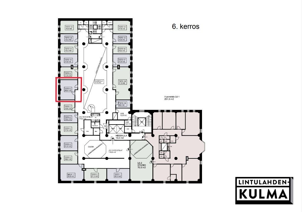 Arvotoimistotilaa Helsingin Sörnäisestä vuokrattavana 6. kerroksen 18 m2 toimistotila (tsto 3).