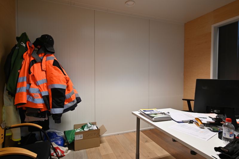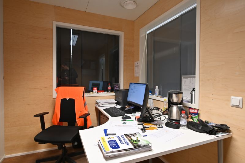 Tilassa on ilmalämpöpumppu, lattiakaivo, toimistohuone & wc.