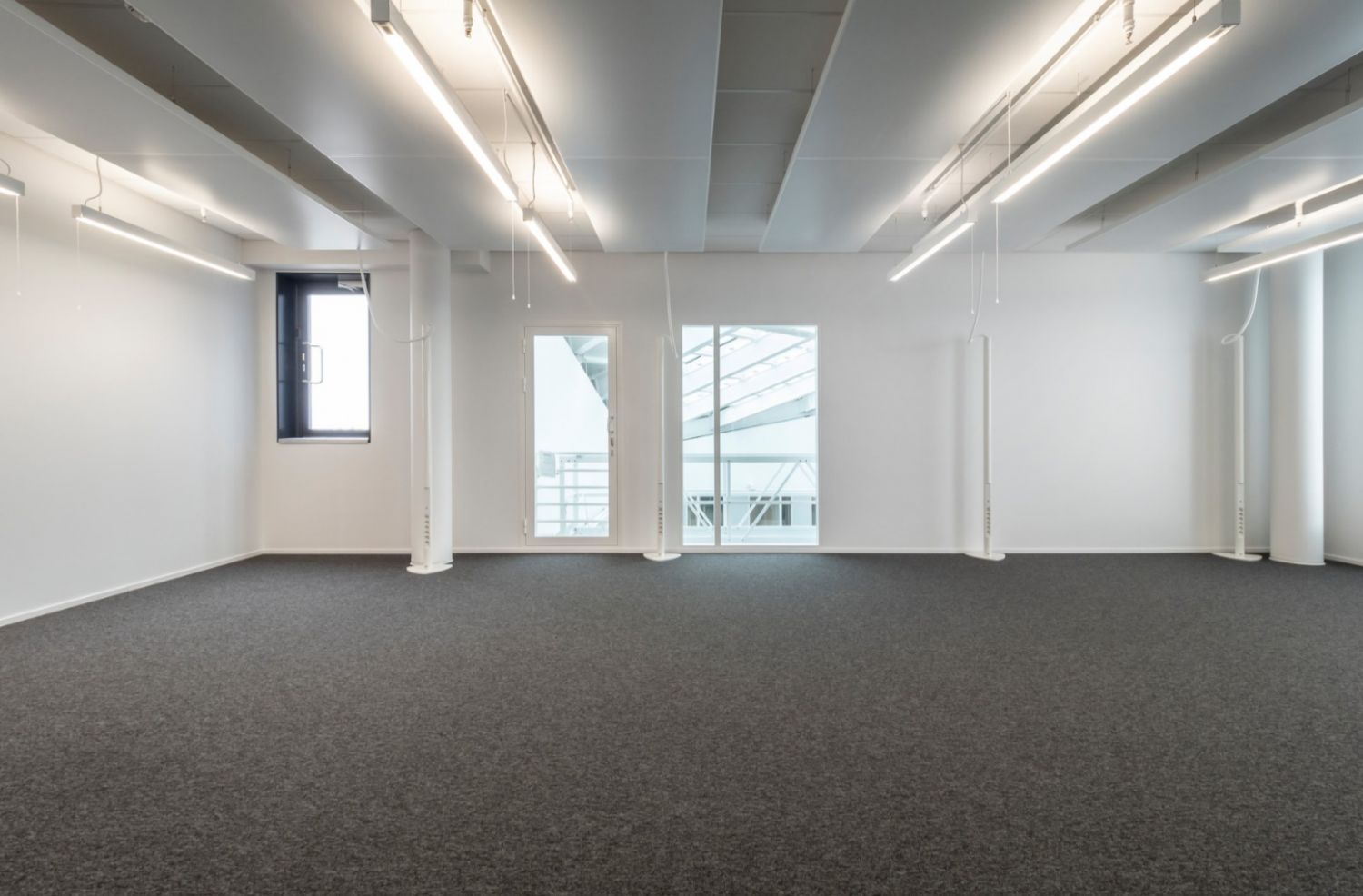 Tilassa on varaus avokeittiölle, kaksi vessaa ja yksi neukkari ja loput tiloista avotilaa, enempää tilanjakoja ei kiinteillä seinillä voi tilaan tehdä mutta esim. vuokralaisella voi olla framery tmv. jolla saa rauhallisen tilan Teamseille tai puheluille.